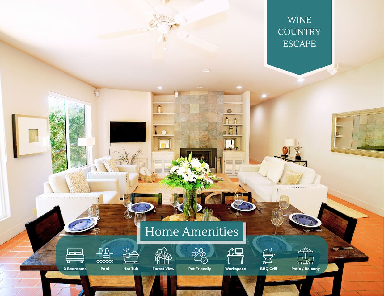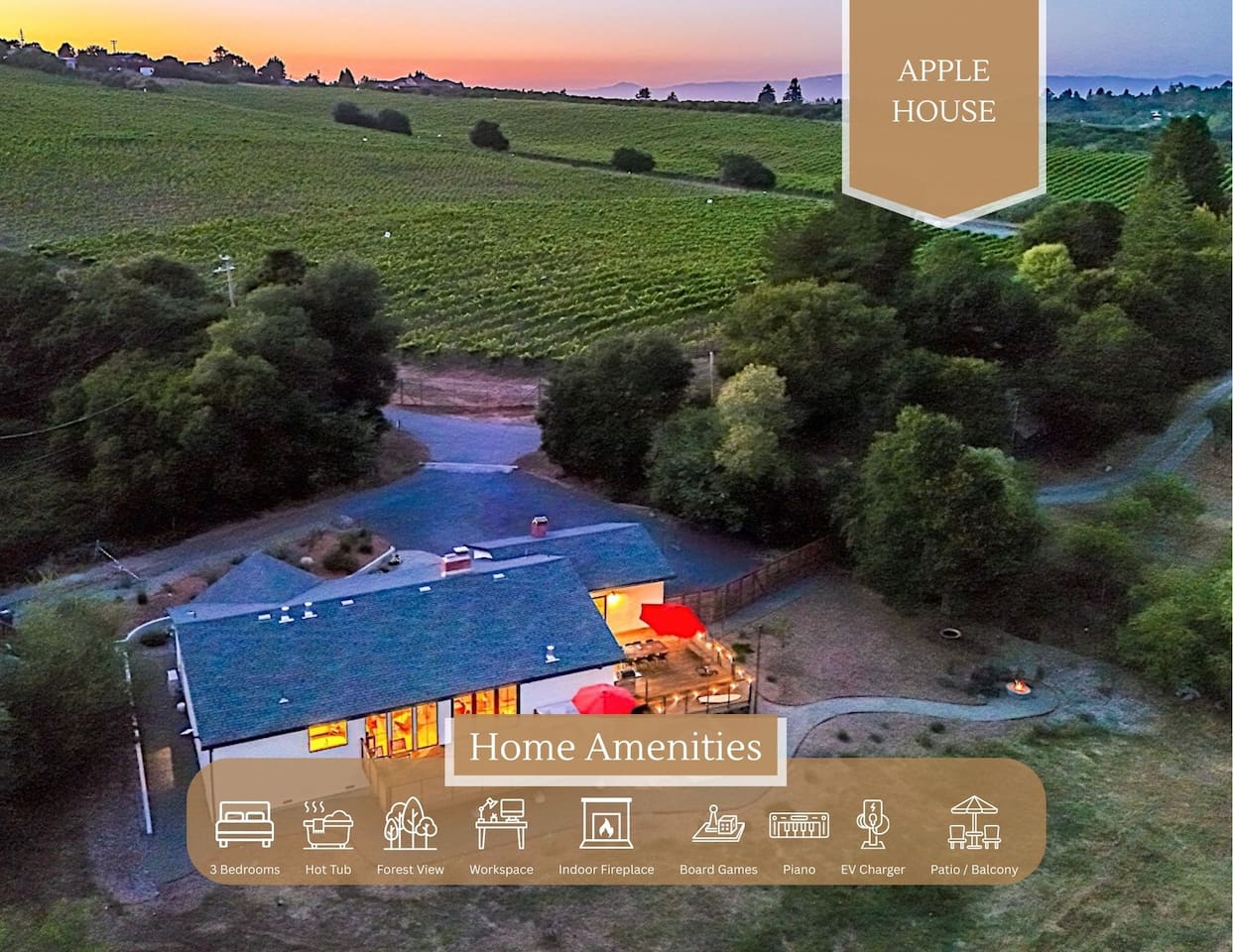 ✔ Fire pit: The perfect spot to relax and enjoy wine with friends.