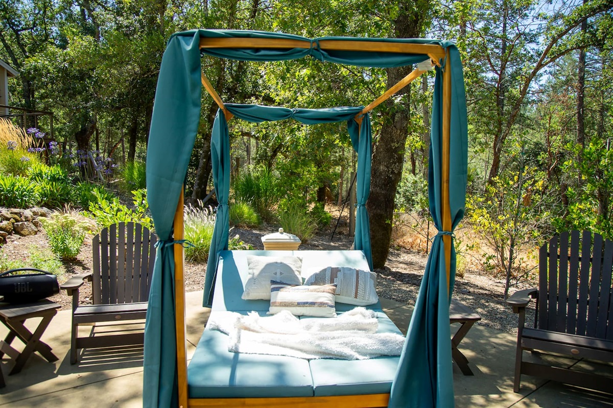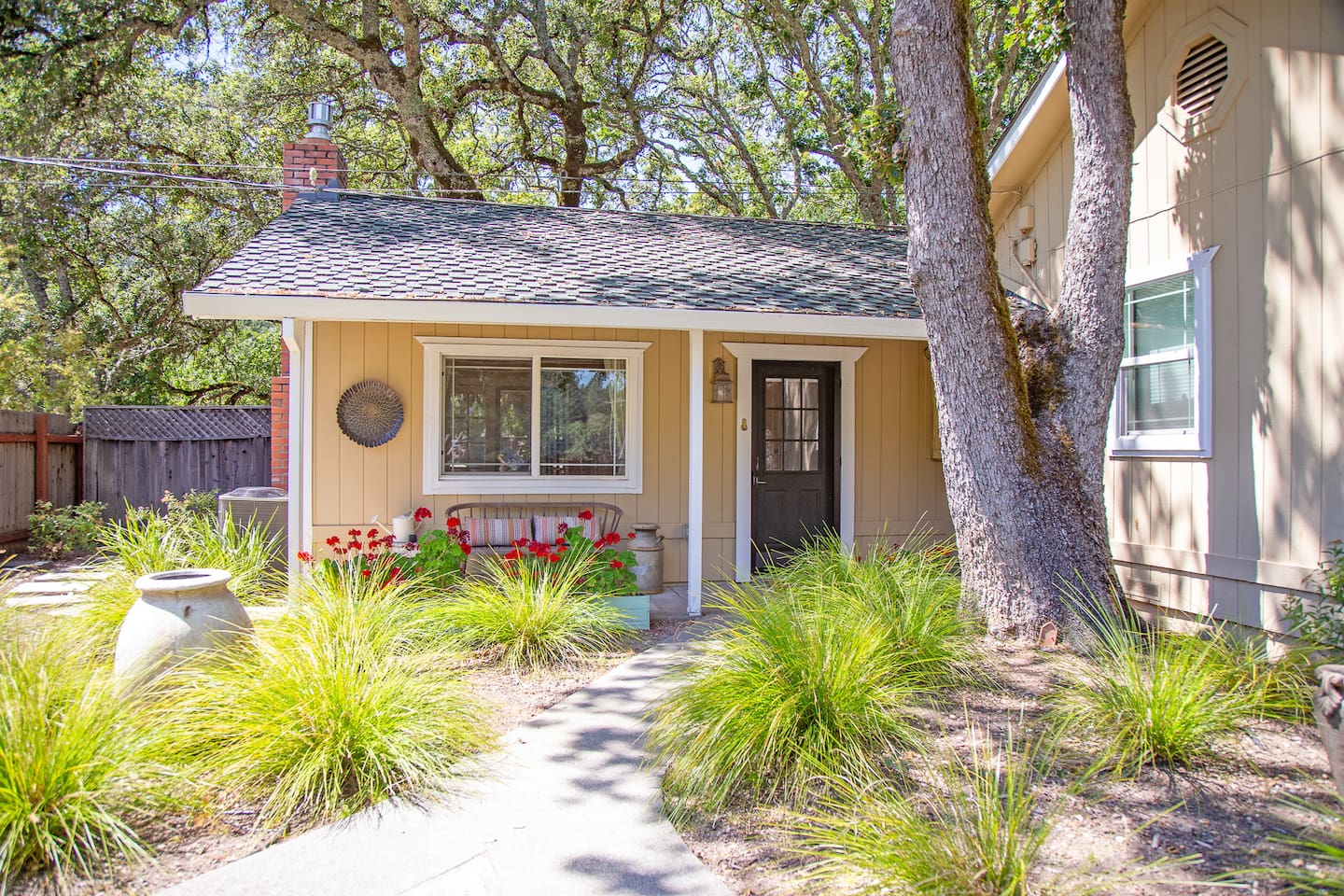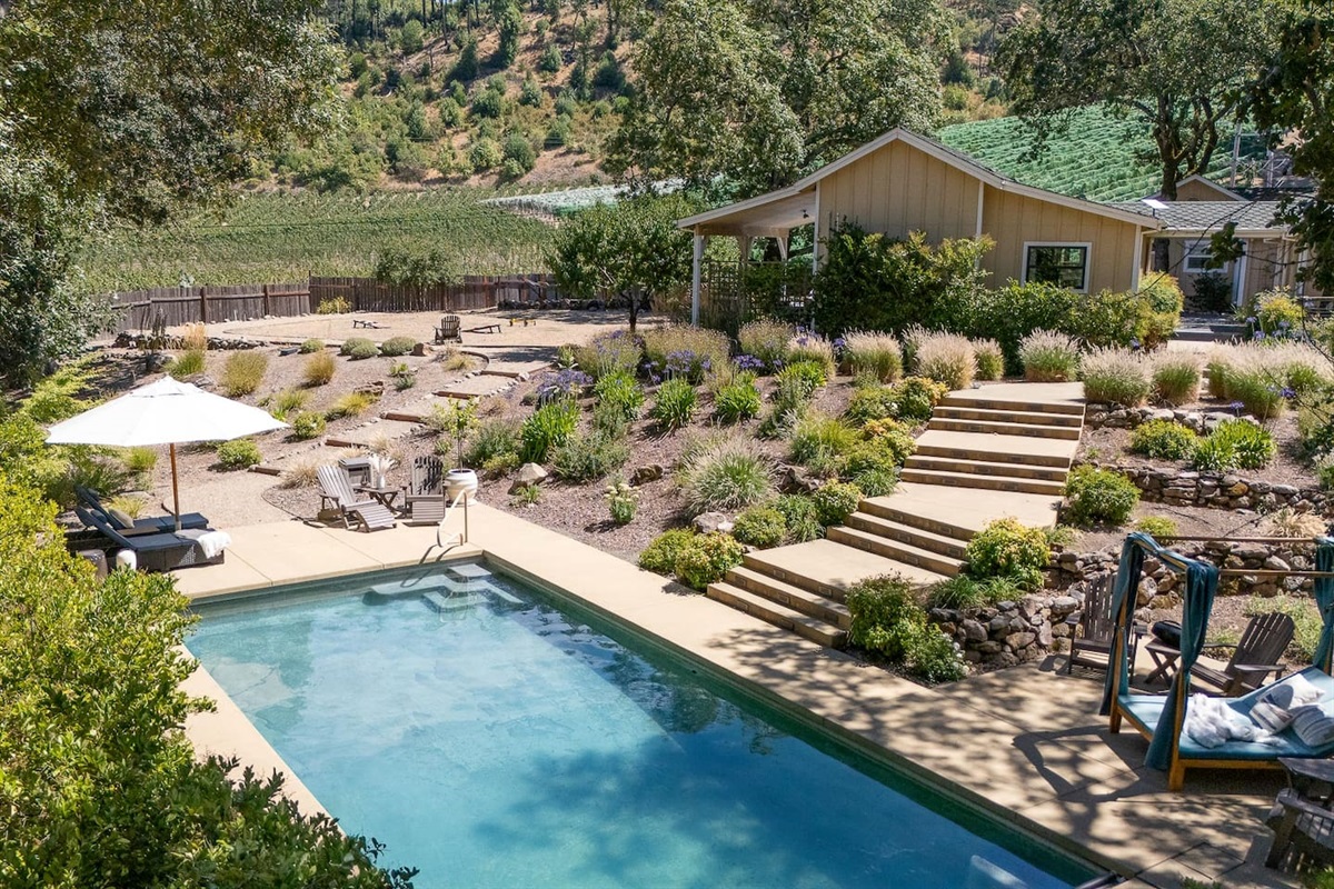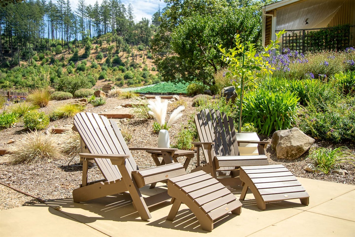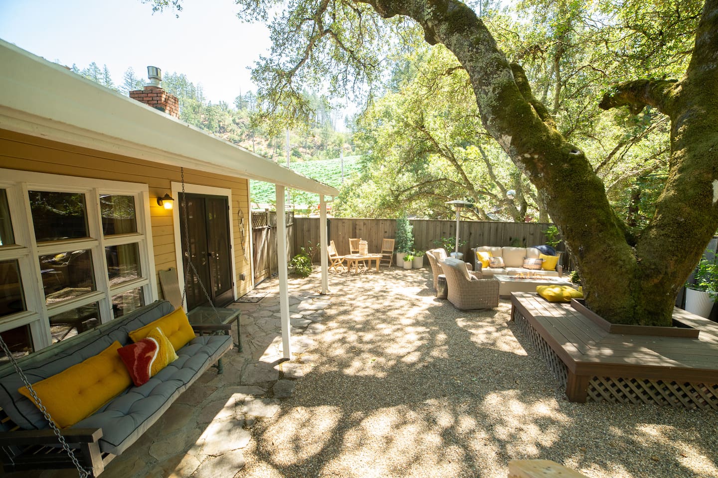 Enjoy outdoor living with vineyard and oak tree views. There is lots of outdoor space – enjoy a swim in the heated pool in the warmer months (pool heating can be purchased separately), or a game of cornhole. Have your breakfast or coffee in the front yard with vineyard views, or enjoy a lunch BBQ in the back. On warmer days, you can sunbathe or swim in the pool, or just take a nap on the hammock. Sit around the fire-table and night with your glass of wine and create new memories! The hot tub, is a welcome night-cap with uninterrupted views of the starry night sky.