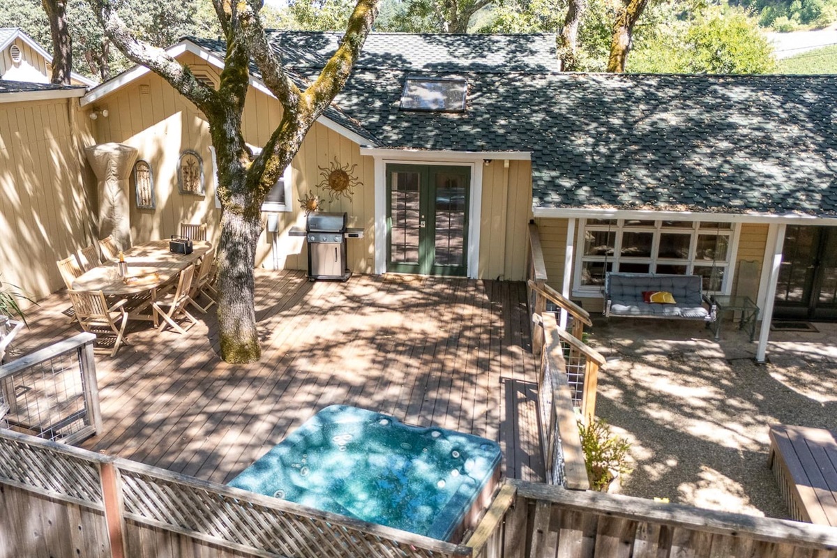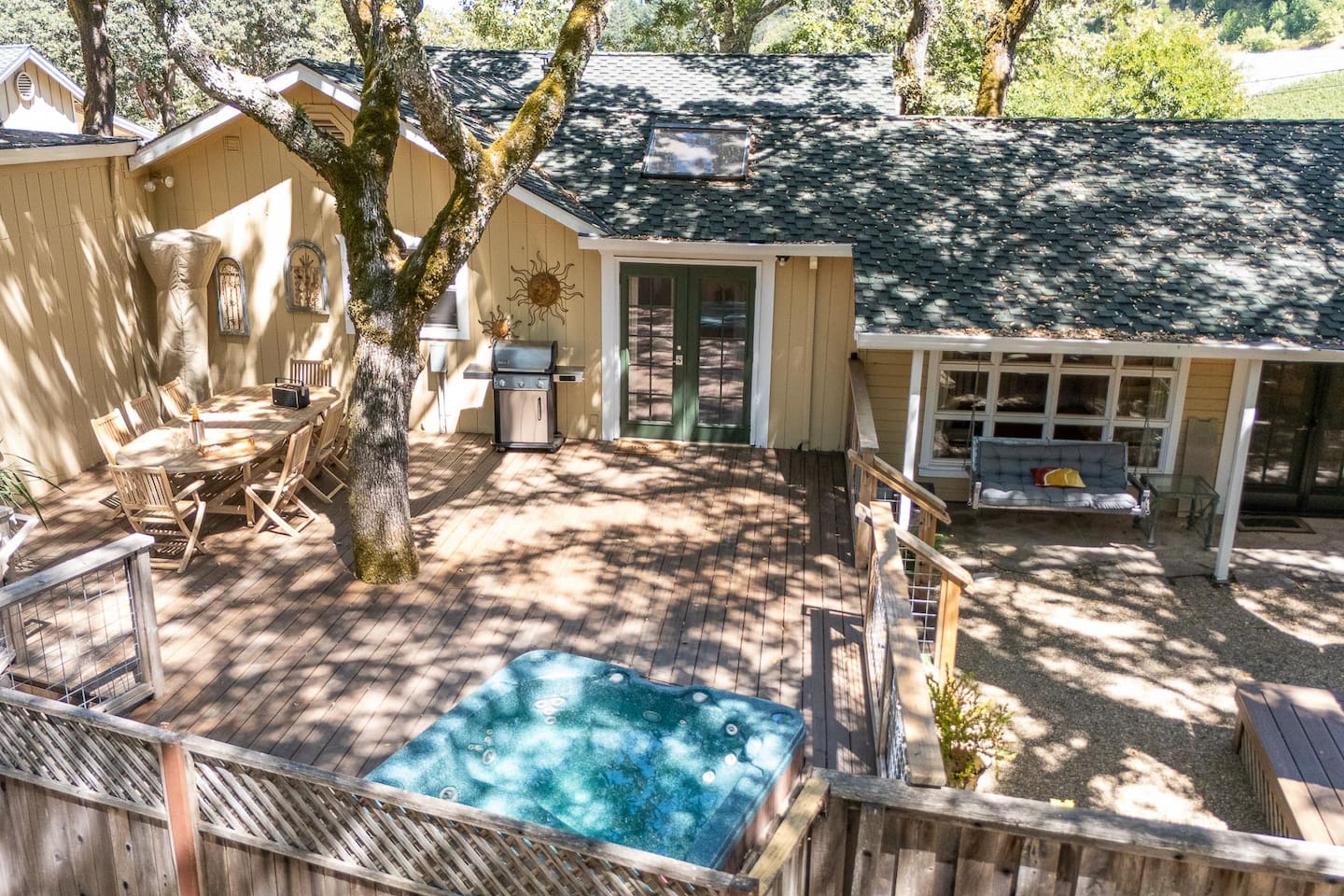 Welcome to your serene getaway in the hills of Glen Ellen, CA! Nestled in the heart of Sonoma County, just a 13-minute drive from the quaint town of Glen Ellen, this home is ideally situated, equidistant from both Sonoma and Napa Counties. This stunning property, featuring a pool, hot tub, fire table, BBQ, outdoor dining, and living rooms with vaulted ceilings and ample natural light. It offers the perfect blend of luxury and comfort, making it an ideal choice for families, couples, or friends seeking a memorable escape.