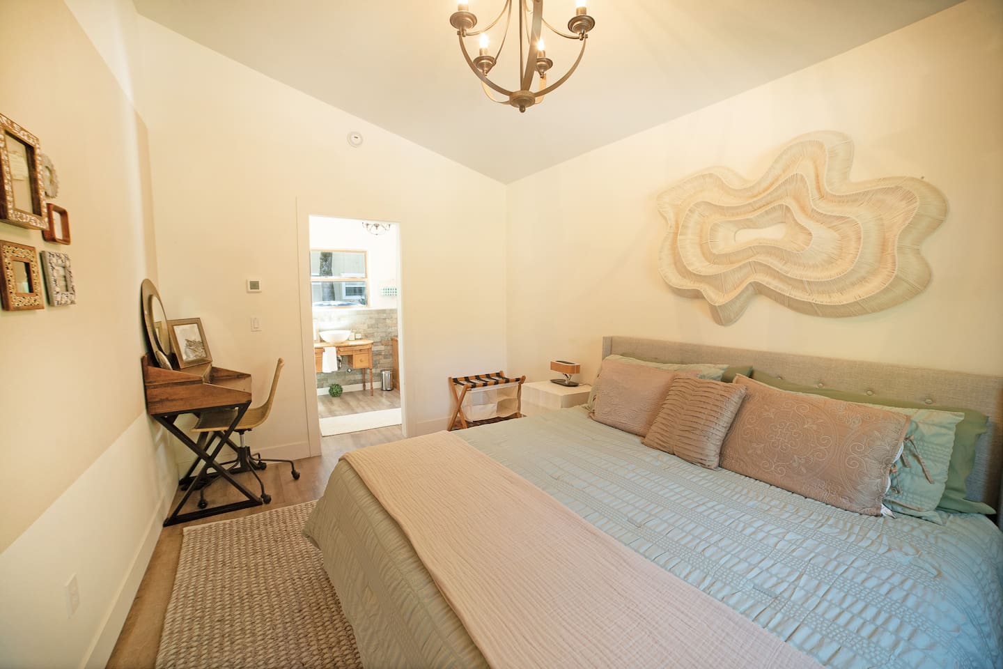 ✔ Bedroom 2: King bed with en-suite half-bath – and just a short walk across to the family room for shower/full bathroom.