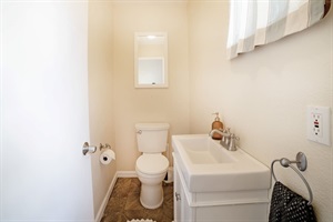 There are three well-appointed bathrooms and 2 half baths in this rental.